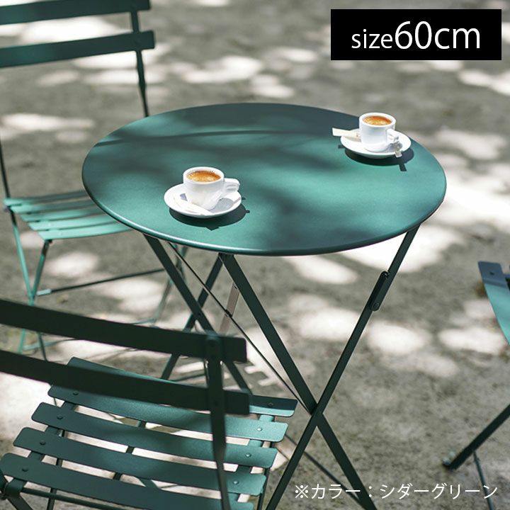 丸型天板の60サイズはテーブルとしても、お庭のお手入れ時の作業台にもなります。必要な時に折り畳んで出し入れ出来るのでとっても便利なんですよ!