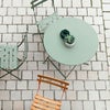 ビストロテーブルは限られたスペースに最大限の席数を確保したいカフェオーナーの要望に答えて、エドゥアルドルクレルクが1889年に開発し、特許を取った軽量でコンパクト、実用的で快適な折りたたみテーブルです。