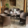 美しく編み込まれた人工ラタンが特徴のダイニングテーブルは、全天候型仕様のため様々な空間・ライフスタイルに適しています。