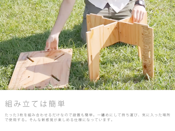 この「PANEL TABLE」はバラして一纏めにすることで簡単に持ち運べるため、
