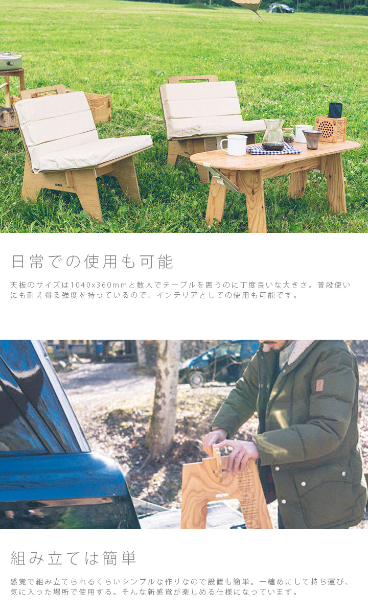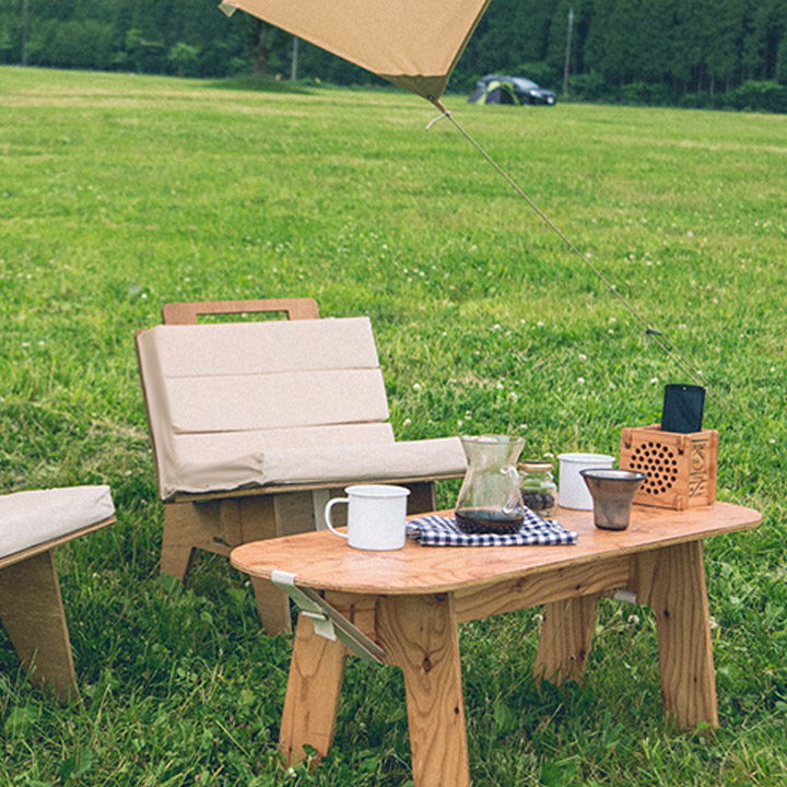 シリーズで揃えれば、アウトドアの中で統一されたリビング感が演出できます。