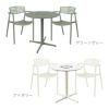 素材:テーブル/[天板]HPL(高圧ラミネート)、[支柱・脚]アルミ、チェア/全天候性ポリプロピレン、グラスファイバー