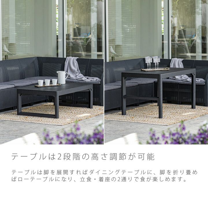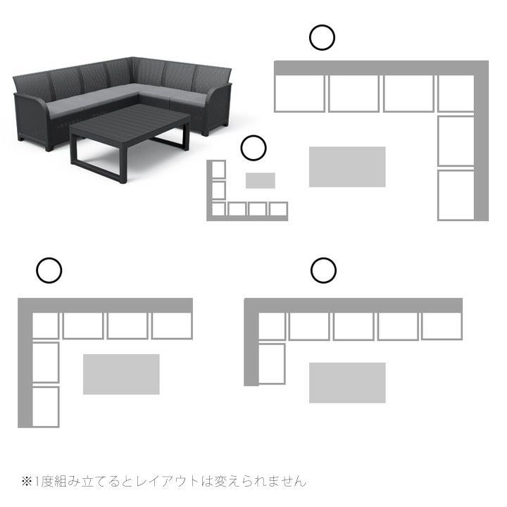 他の画像を見る KETER ガーデンファニチャー リゾート ラタン調 家具 ソファ ローテーブル ダイニングテーブル 樹脂 屋外用 室外用 ROSALIE CORNER SOFA WITH LYON TABLE SET ガーデンファニチャーセット 「ケター エマ (KETER EMMA) 2人掛けスムースアームソファー&リヨンテーブル 4点セット 149325」 販売価格 ¥ 49,500 税込 在庫切れ 詳細を見る お気に入りに登録する (0)