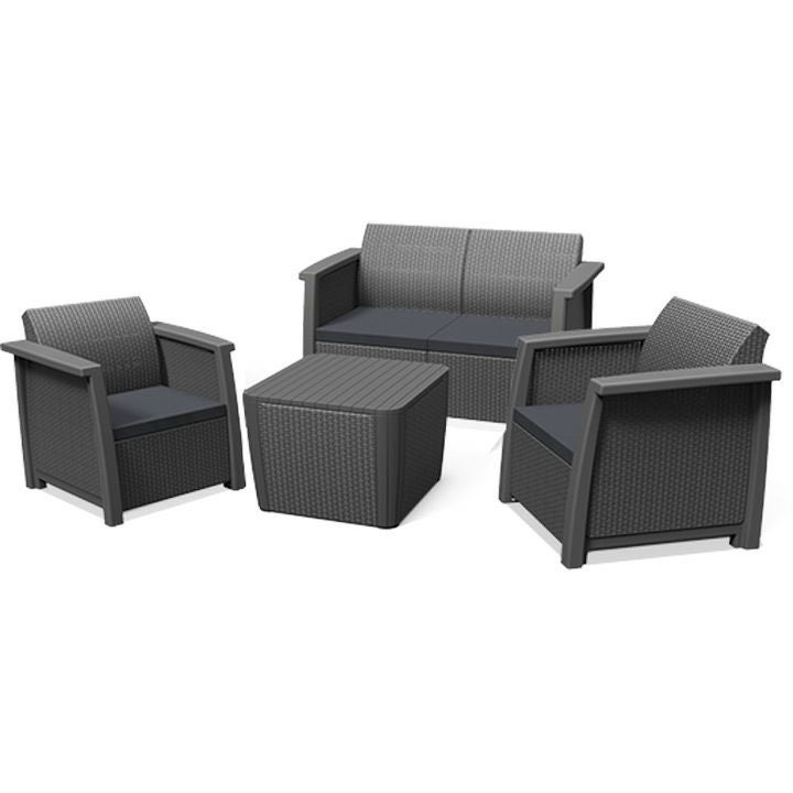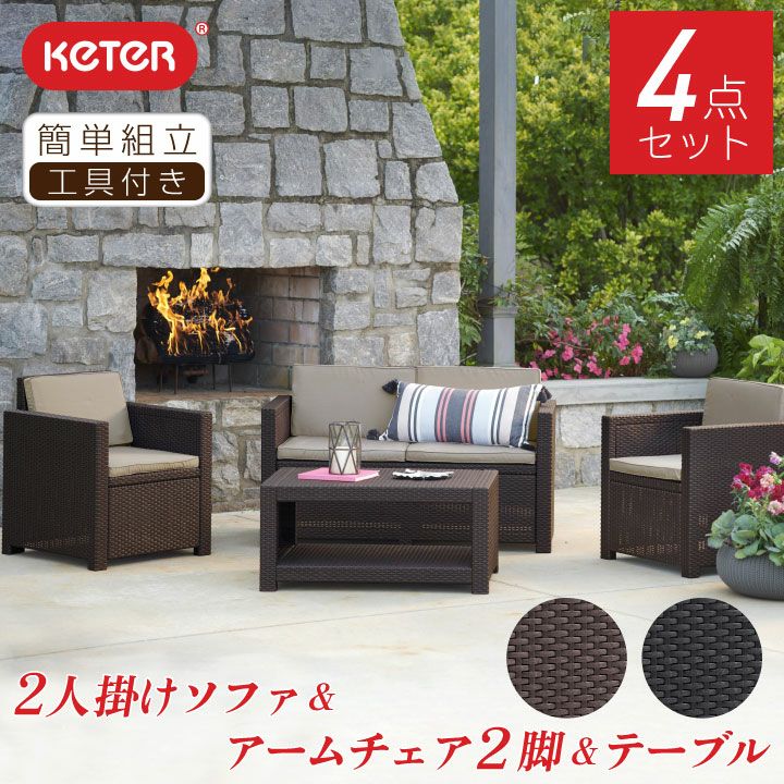 他の画像を見る KETER ケター ガーデン ファニチャー チェア ソファ テーブル 樹脂製 グラファイト クッション 耐候性 防錆 樹脂製ラタン調ファニチャー「ケター(KETER) フリーモント 収納付きガーデンテーブル&ソファ 4点セット (FREMONT 4SET 148564)」 販売価格 ¥ 63,800 税込 在庫切れ 詳細を見る お気に入りに登録する (0)