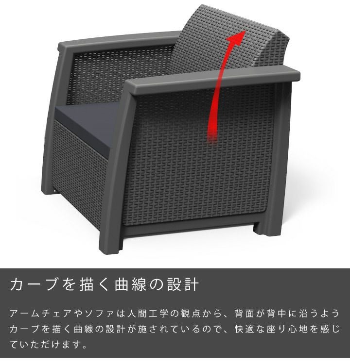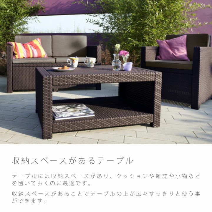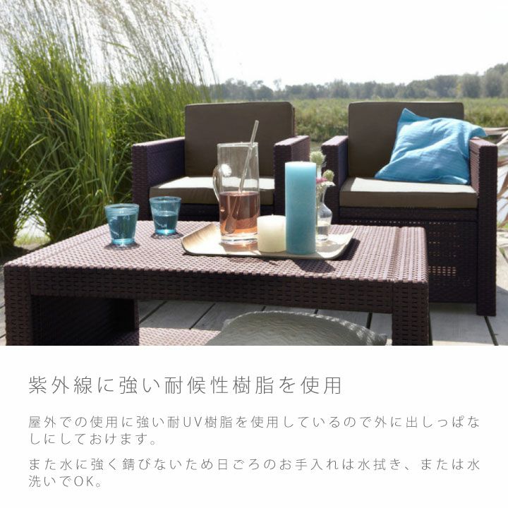 他の画像を見る Keter ケター エマ 3シート ソファ チェア テーブル ラタン 樹脂 クッション 収納 樹脂製ラタン調家具「ケター (KETER) エマ バルコニーセット 3点セット (EMMA BALCONY SET 147871)」 販売価格 ¥ 37,400 税込 在庫切れ 詳細を見る お気に入りに登録する (0)
