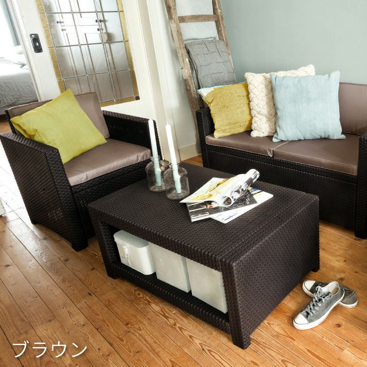 他の画像を見る KETER ガーデンファニチャー リゾート ラタン風家具 ソファ チェア テーブル スツール 樹脂 屋外用 室外用 「4点セット 3人掛けソファー・アームチェア・フットスツール・テーブル ケター モーレア(KETER Moorea 154473・154282)」カプチーノ(ブラウン) ローソファー 販売価格 ¥ 99,000 税込 〜 販売価格 ¥ 税込 在庫切れ 詳細を見る お気に入りに登録する (0)