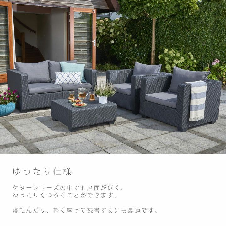 他の画像を見る KETER ガーデンファニチャー リゾート ラタン風家具 チェア テーブル 樹脂 屋外用 室外用 ロースタイル 「4点セット 3人掛けガーデンソファー・アームチェア2脚・テーブル ケター(KETER) サルタ」【単品販売可】 販売価格 ¥ 162,800 税込 詳細を見る お気に入りに登録する (0)
