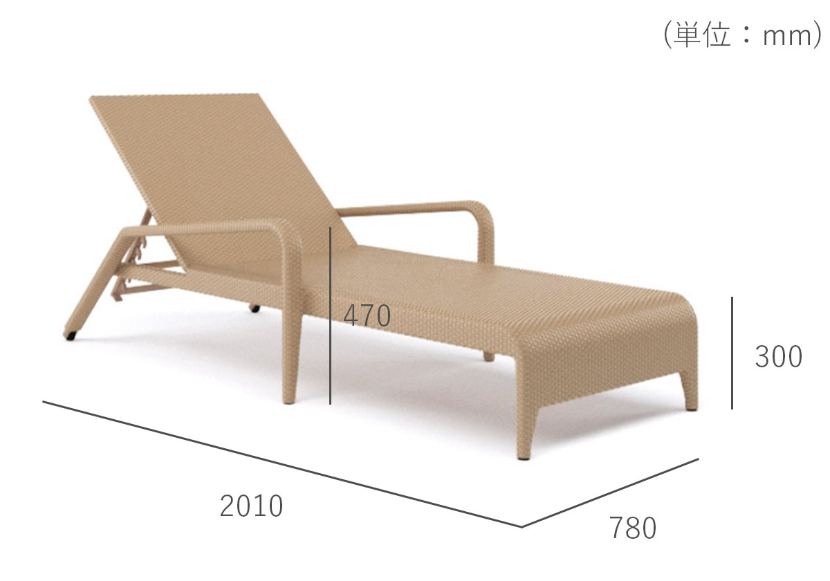 5段階のリクライニングでお好きな角度でくつろぐことが出来ます。プールやスパ以外にもグランピング施設等の宿泊施設にもおすすめです。