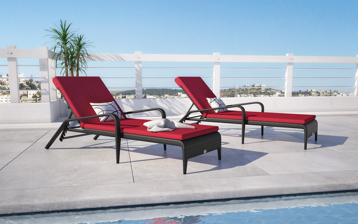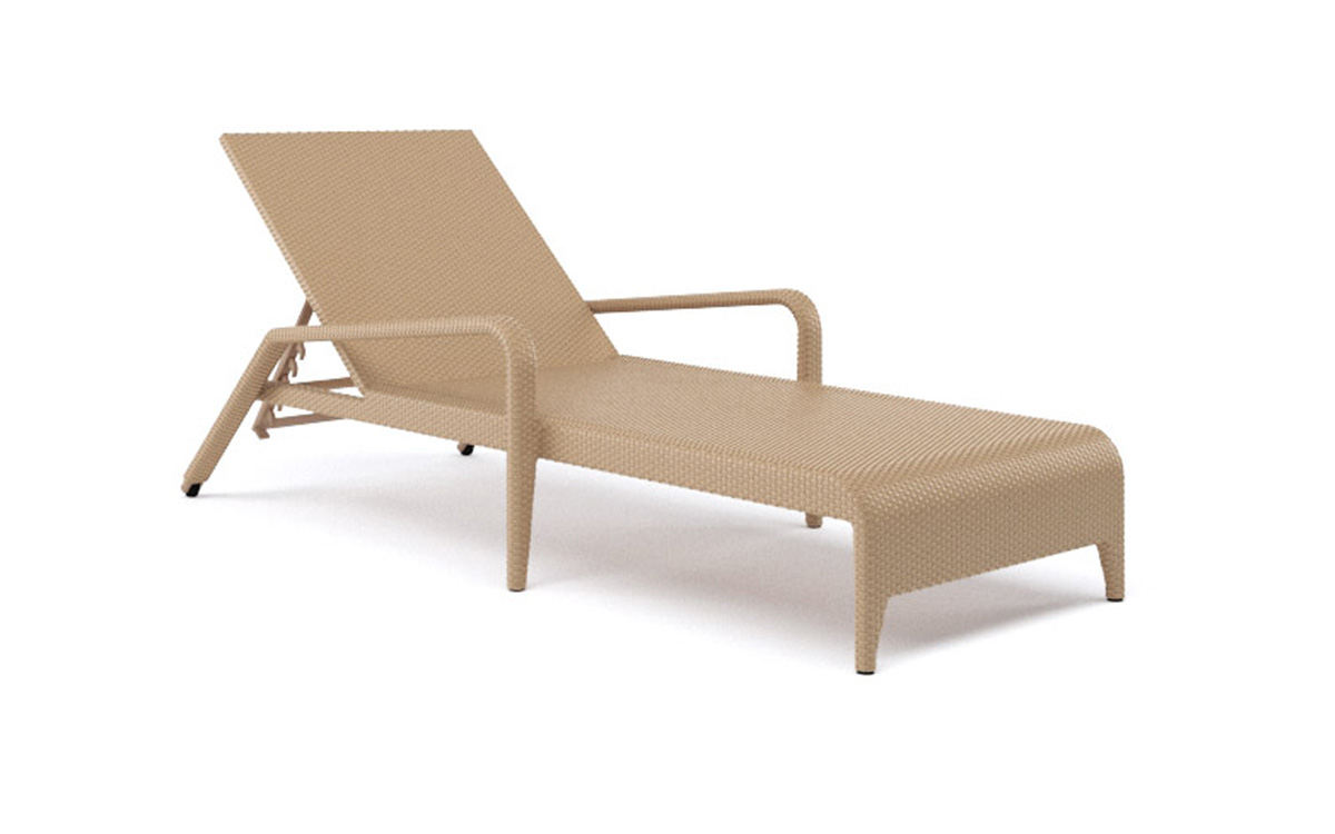 プールサイドに馴染む上品でシンプルなデザインのサンラウンジャー。肘掛け付きなので、屋外での読書タイムやリラックスタイムにピッタリです。