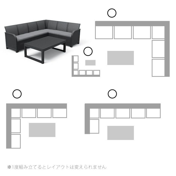 KETER ガーデンファニチャー リゾート ラタン調 家具 ソファ ローテーブル ダイニングテーブル 樹脂 屋外用 室外用 ROSALIE CORNER SOFA WITH LYON TABLE SET ガーデンファニチャーセット 「ケター (KETER) ロザリエ コーナーソファ&リヨンテーブルセット」