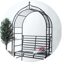 トレリス・アーチ・オベリスクちょっとオシャレなアーチやオベリスクでガーデニングを更に楽しく♪植物のない時期も美しい佇まいを見せるアイテムです。オベリスクの先端の飾りはアンティークみたいで、植物の間からチラチラと見えるのも可愛いんです!