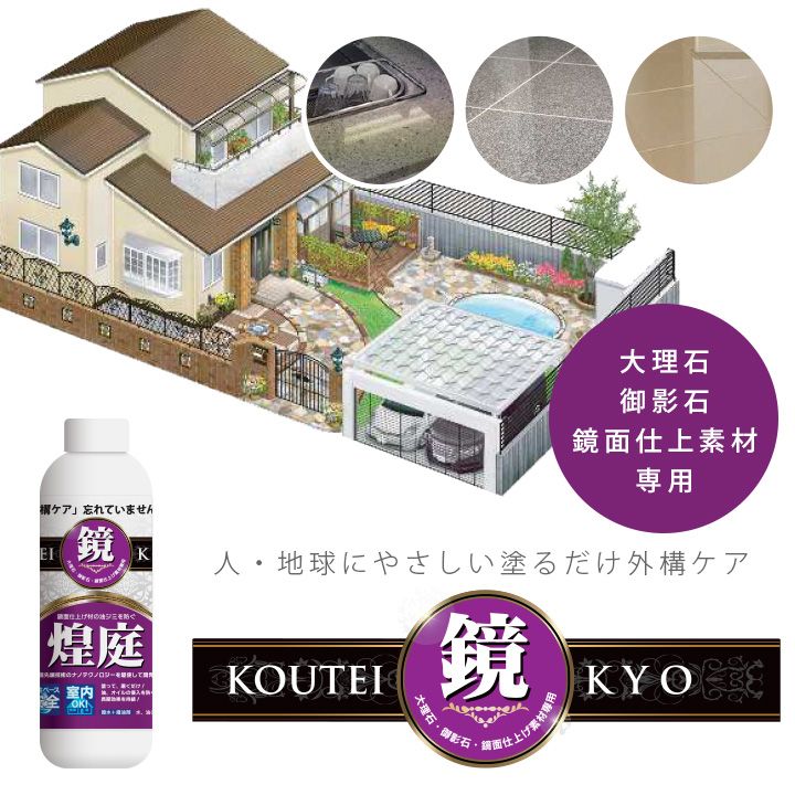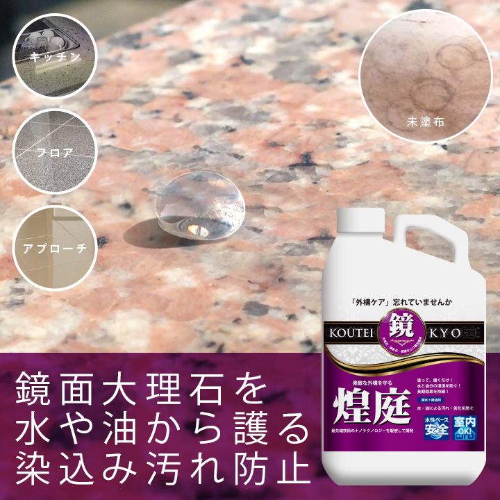 カビ防止 シミ防止 水シミ 油シミ ワインシミ 腐蝕防止 汚れ防止 外構ケア 水性 【施工目安面積:12~18平方メートル】 「煌庭(コウテイ) 鏡 KYO 1L 大理石・御影石などの鏡面仕上げ素材用」