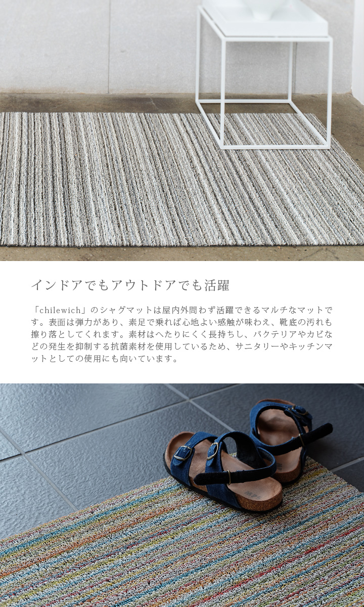 玄関マット おしゃれ ドアマット ユーティリティマット インドア アウトドア カラフル 業務用 樹脂製 屋外 屋内 ガーデンマット エントランスマット ウェルカムマット おしゃれな玄関・ドアマット「chilewich チルウィッチ シャグマットシリーズ ユーティリティマット スキニーストライプ バーチ 61×91cm」