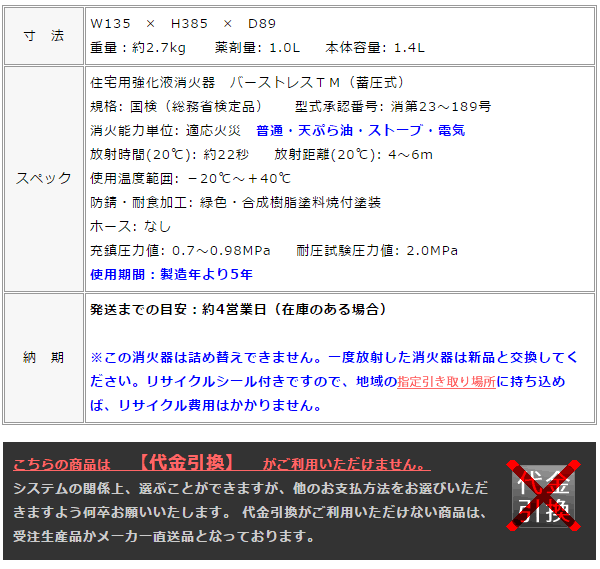 ※消火器は空輸が出来ないため、離島へのお届けは船便となり、納期に1週間以上頂戴する場合がございます。