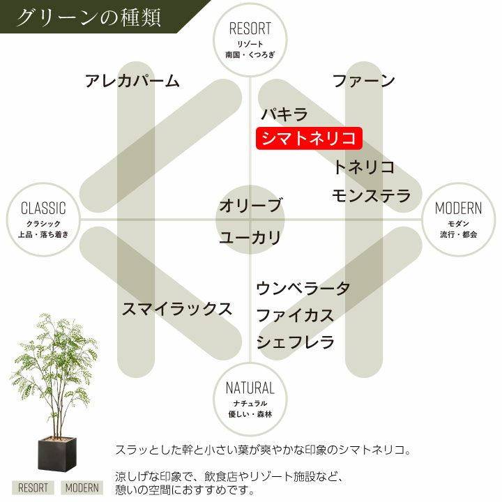 他の画像を見る wg CLAY クレイ フェイク 7-026 910-101 キューブ 165cm以下 フェイクグリーン×プランターセット「シェフレラ×Cube w/g」[高さ150cm・人工樹木・人工観葉植物] 販売価格 ¥ 52,800 税込 詳細を見る お気に入りに登録する (0)