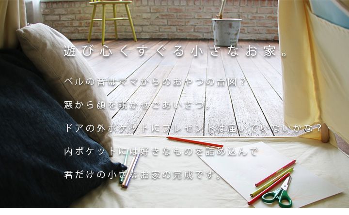 やさしく包まれながら、<いつもの日常>を再現できるキッズテントは、お子様がゆったりした気分で遊びに徹することのできる和やかな場所です。我が子の素朴な日常を見つめながら、ゆったりとリラックスできる時間を過ごしてみませんか。