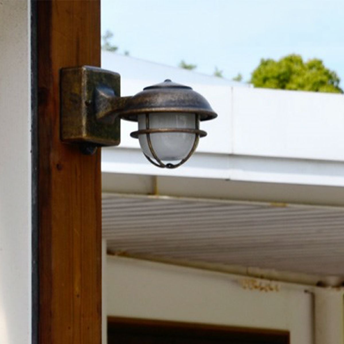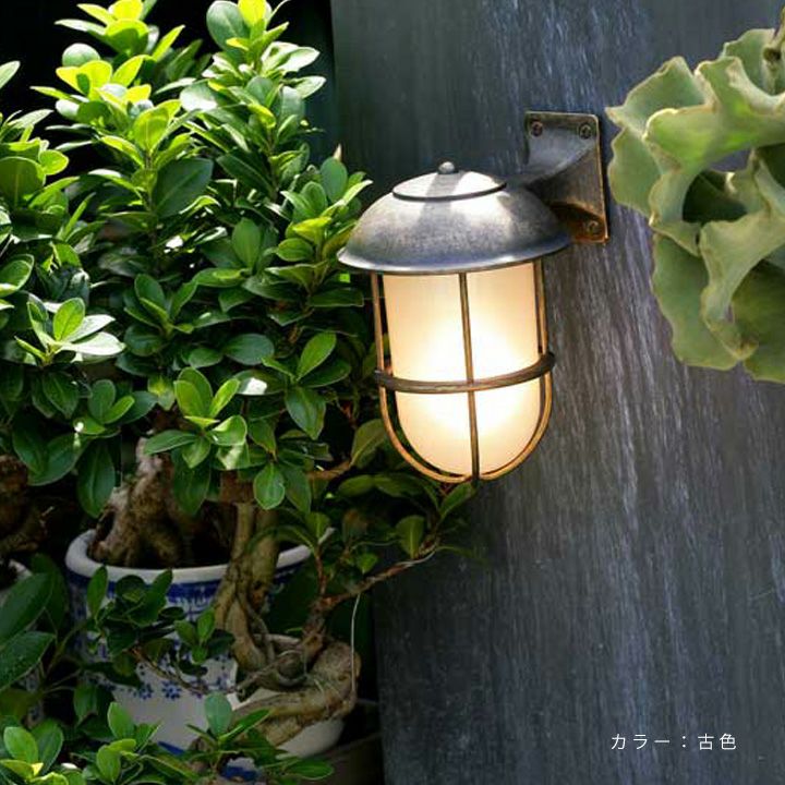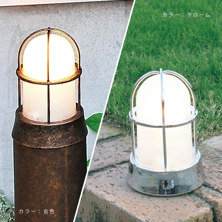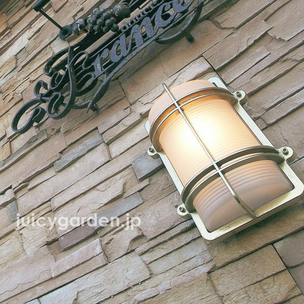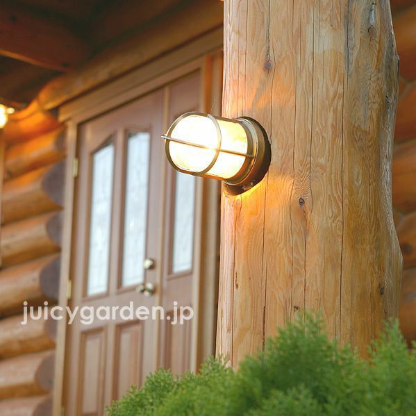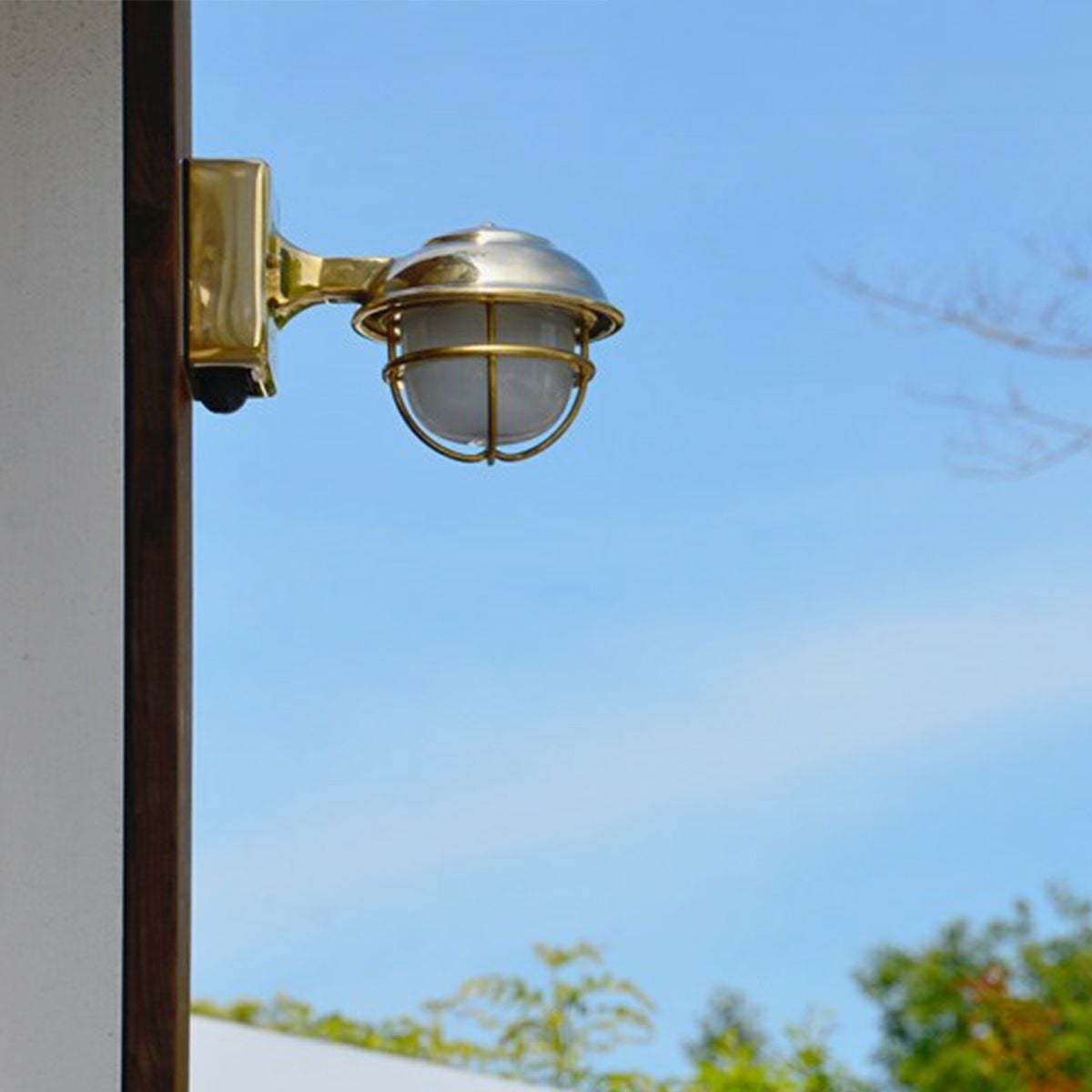 ライト エクステリア 照明 門灯 グローブランプ 玄関 インテリア 屋外 屋内 ガレージ デッキ 庭 リビング キッチン マリンランプ 「真鍮ガーデンライト BH1000 くもりガラス LED」