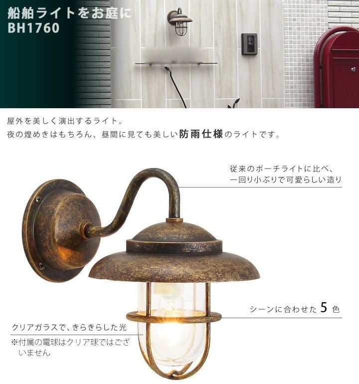 ライト エクステリア 照明 門灯 グローブランプ 玄関 インテリア 屋外 屋内 ガレージ デッキ 庭 リビング キッチン マリンランプ 「真鍮ガーデンライト BH1000 クリアガラス LED」