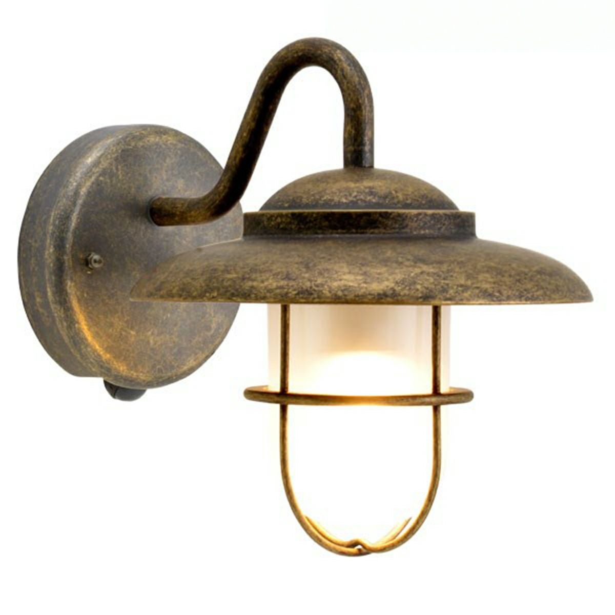 ライト 照明 ポーチライト 玄関灯 外灯 壁設置 モーションセンサー タイマー付き 外灯 おしゃれ モダン シンプル ガラス 真鍮 ブラケット マリンライト 防雨型 船舶照明 人感センサー 明暗センサー 「真鍮ガーデンライト LED電球 BR5060 FR LE SL くもりガラス 人感センサー付き」