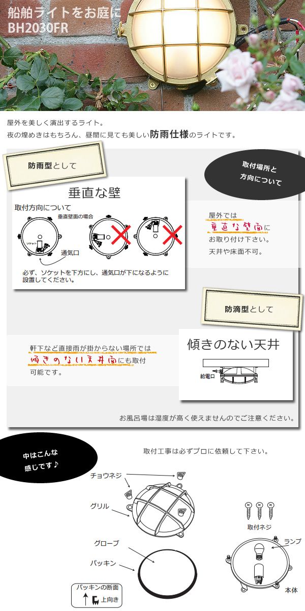 備考:PSE取得済、防雨型照明、直接配線(本体内部へ配線を引き込み、結線する方式を採用)