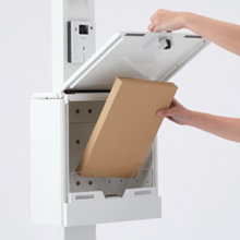 | 通常の郵便物に加えて、メール便や大型郵便物など受取サインのいらない薄型の配達物をポストで安全に複数個受け取ることができます。 |