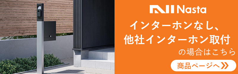 24時間玄関前を録画する「ナスタ インターホン」がセットになった、安心とデザイン性どちらも兼ね備えた機能門柱です。