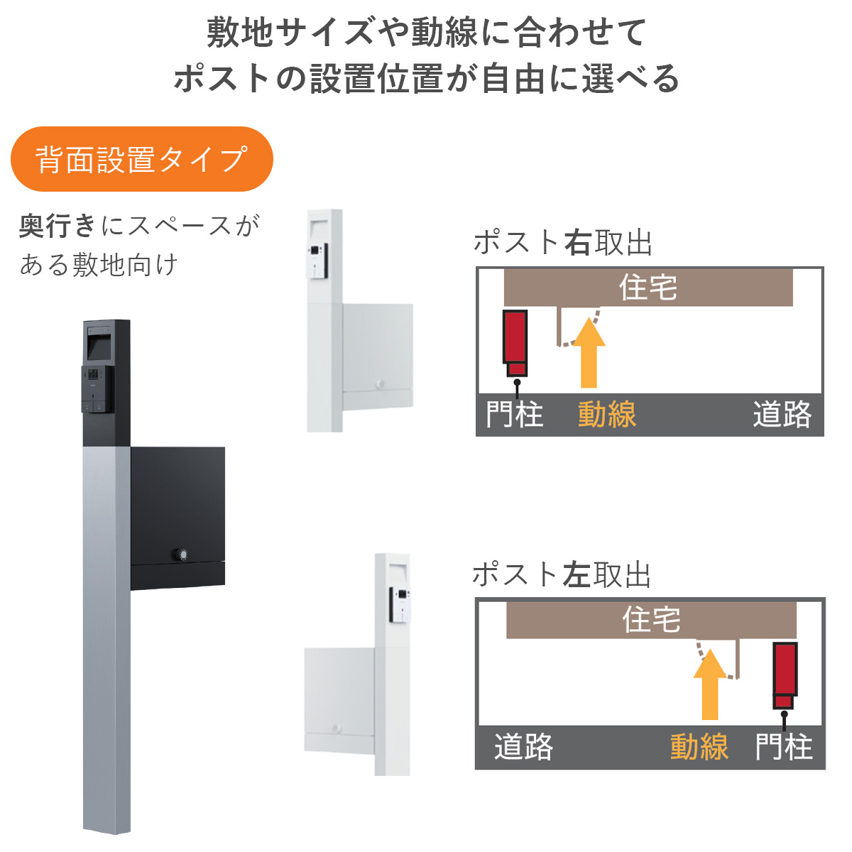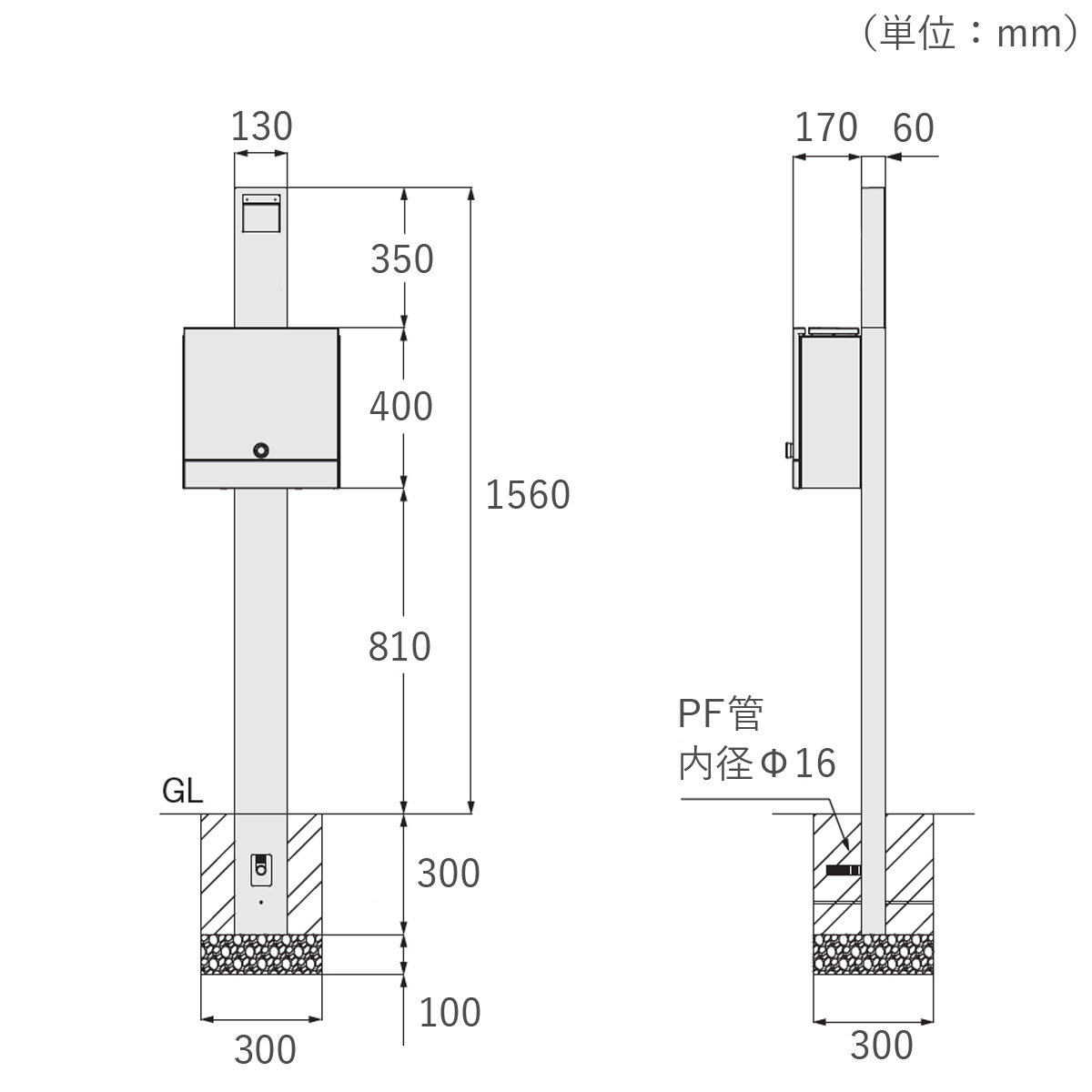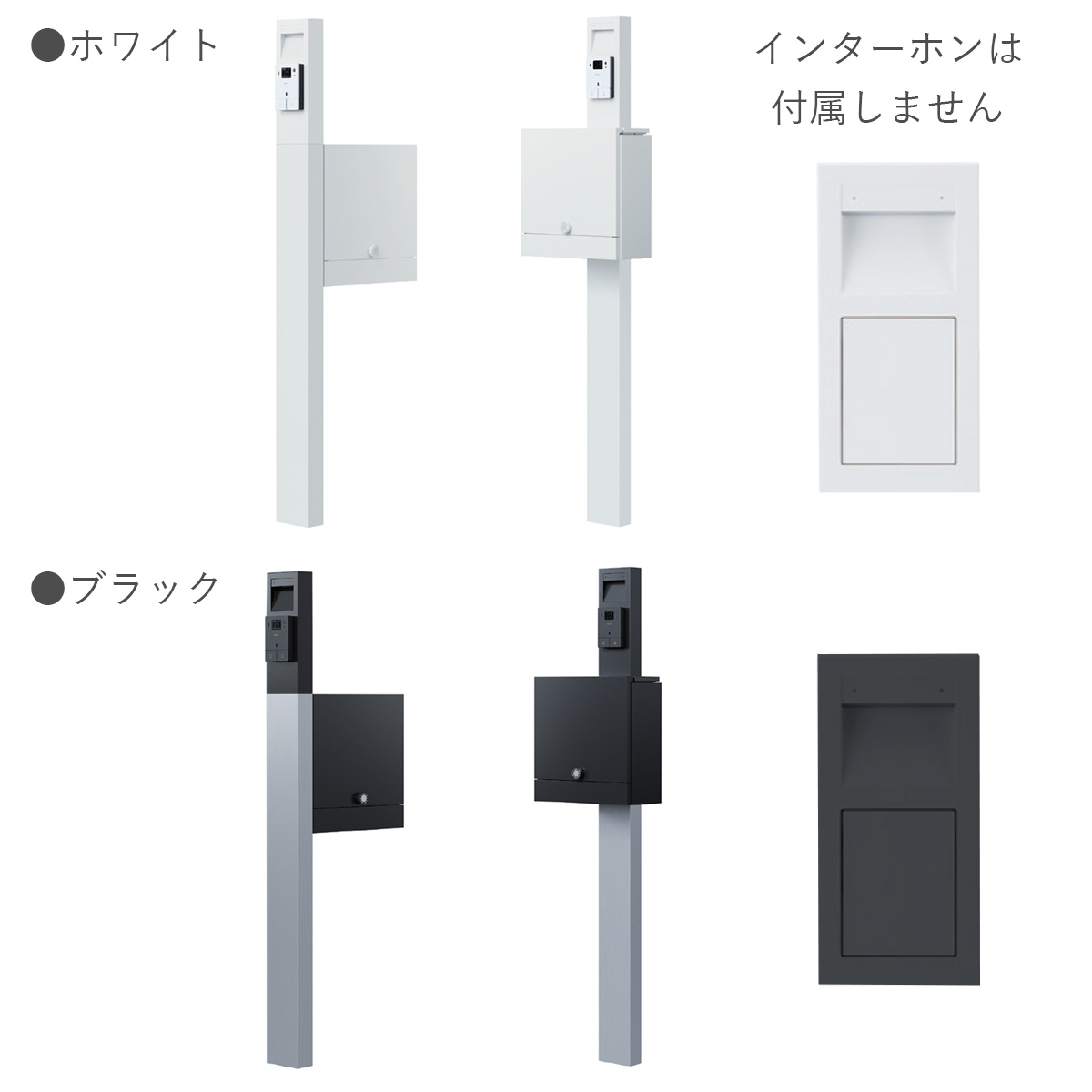 付属品:ポスト取付用ねじ、背面パネル、背面ステー、支柱抜け止め、インターホンパネル取り付け用ねじ、PFジョイント、ケーブルクランプ、ナイロンリベット、インターホン取付用ねじ(インターホン取付仕様の場合のみ)