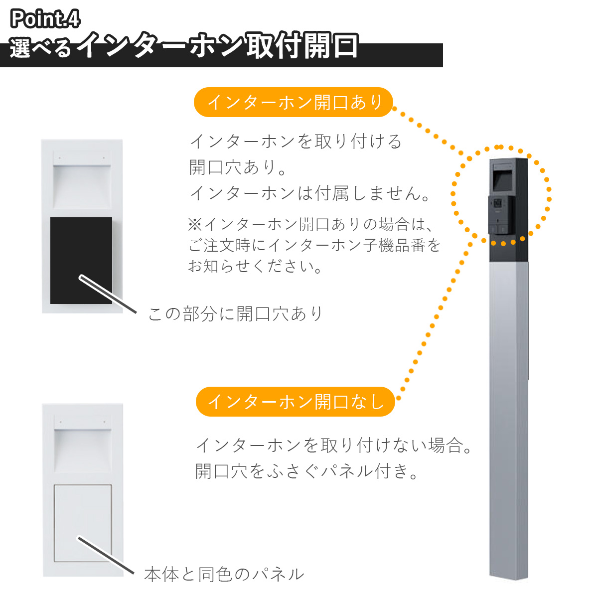 素材(門柱):支柱/アルミニウム(アルマイト処理)、インターホンボックス/ASA樹脂