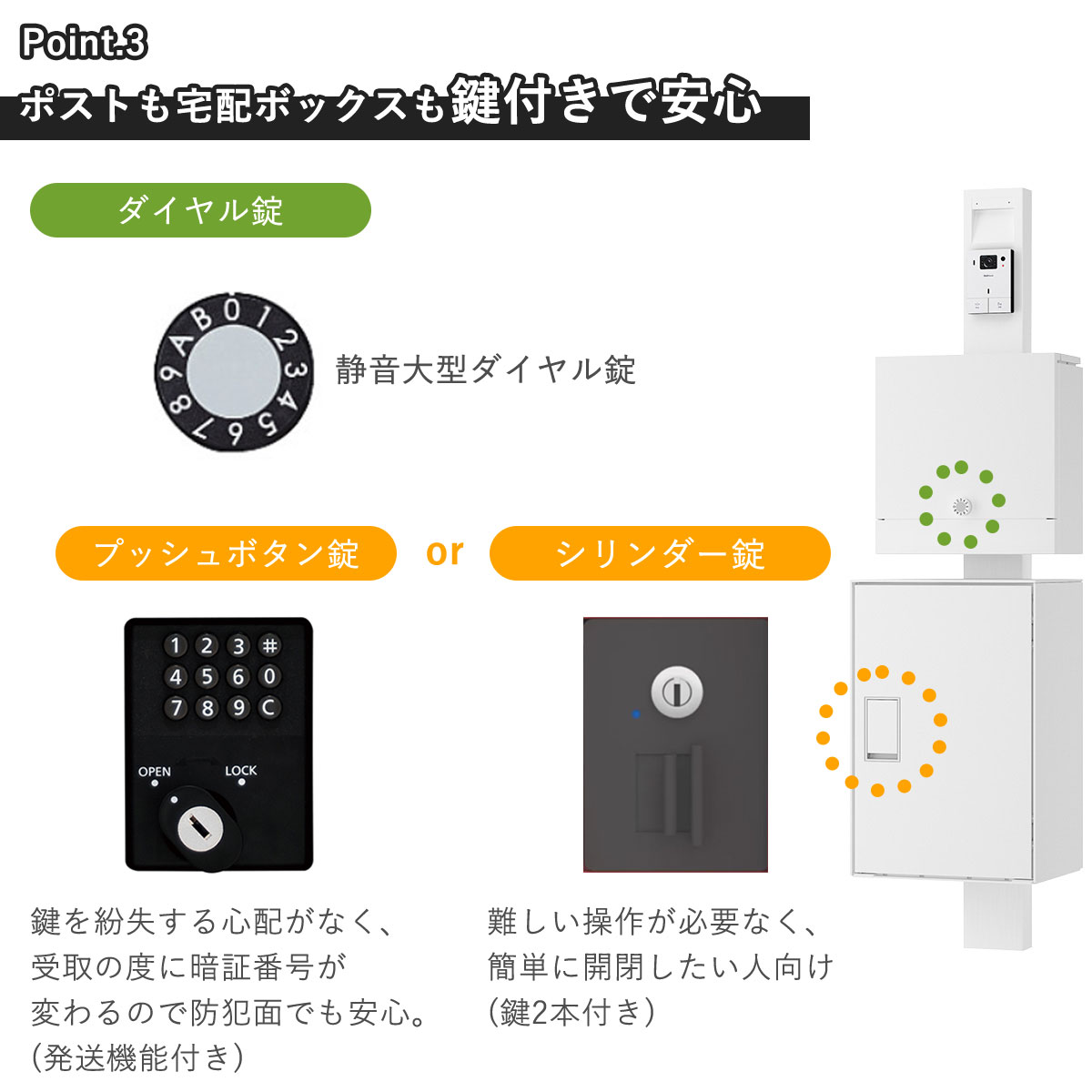 備考:宅配ボックス/プッシュボタン錠のみ発送機能付き、防水保護等級IPX4、郵便ポスト/防水保護等級IPX3
