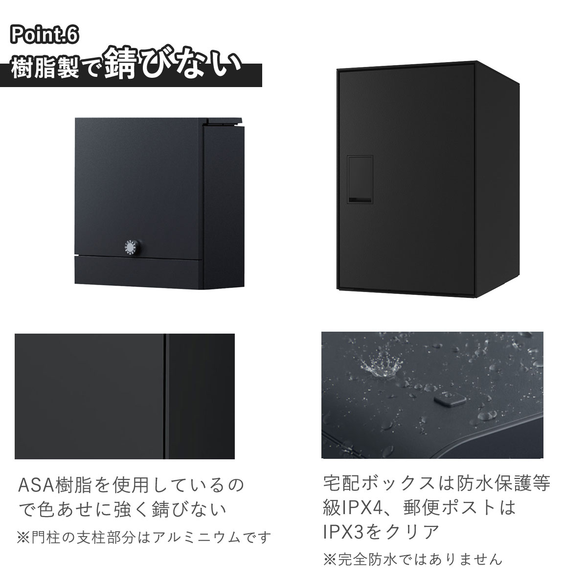 備考:宅配ボックス/プッシュボタン錠のみ発送機能付き、防水保護等級IPX4、郵便ポスト/防水保護等級IPX3