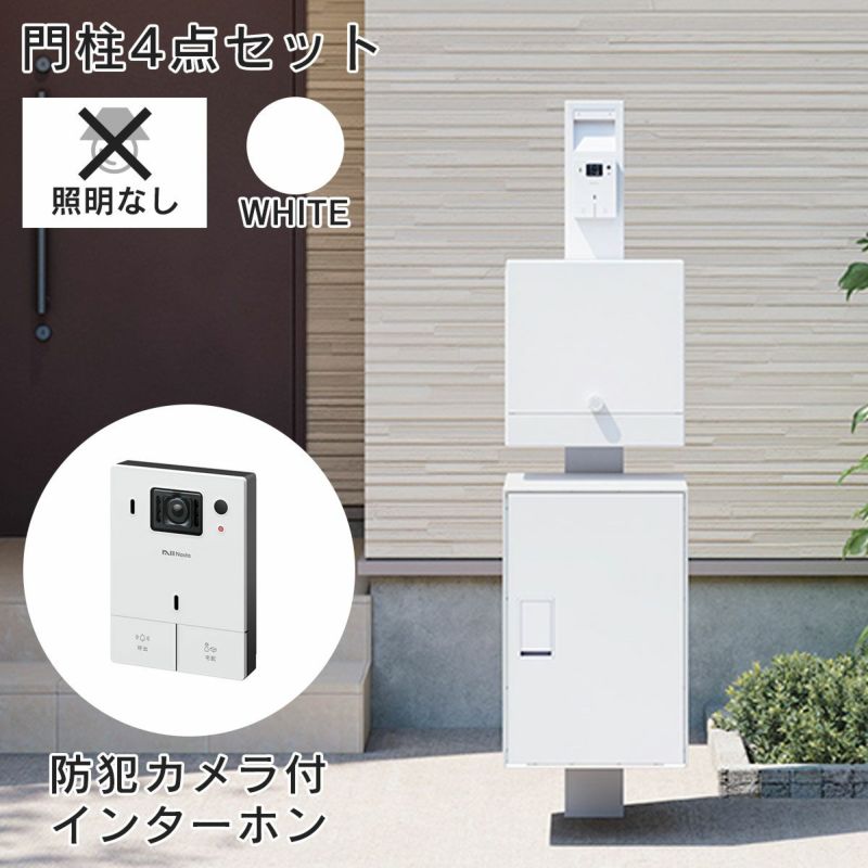機能門柱 宅配ポスト インターフォン 防犯カメラ 監視カメラ 防犯 日本製 壁掛け 壁付け 置き配 再配達 戸建て 個人宅 一軒家 アプローチ エクステリア エントランス 玄関 不在 非接触 受取 荷物 ナスタ NASTA 「【照明なし】【インターホンセット】ナスタボックス ライト 門柱ユニット カラー:ホワイト(宅配ボックス + 郵便ポスト + 門柱 + インターホン) 」