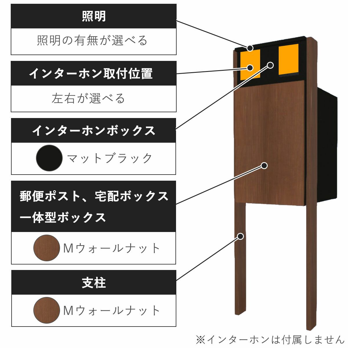 他の画像を見る 門柱 シンプル 照明 門灯 木目 木目調 ウッド調 宅配ポスト 何度も受取 複数受取 複数投函 ポスト一体 盗難防止 ネコポス レターパック 大型郵便 A4 投函 置配 再配達 戸建て 一戸建て 機能門柱 + インターホンセット 「ナスタボックス +ポスト Lサイズ 門柱 ユニット [ Mウォールナット ]」 販売価格 ¥ 192,500 税込 〜 販売価格 ¥ 税込 詳細を見る お気に入りに登録する (0)