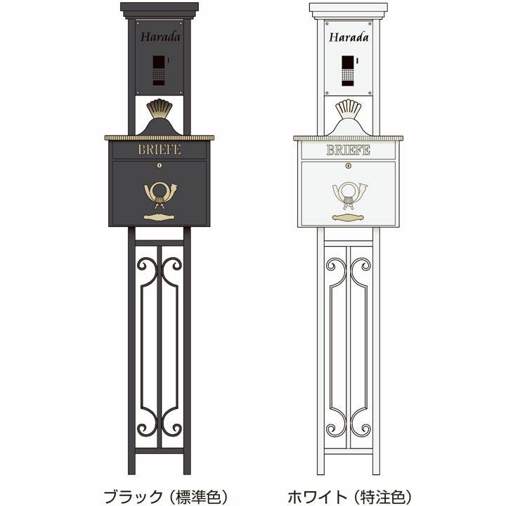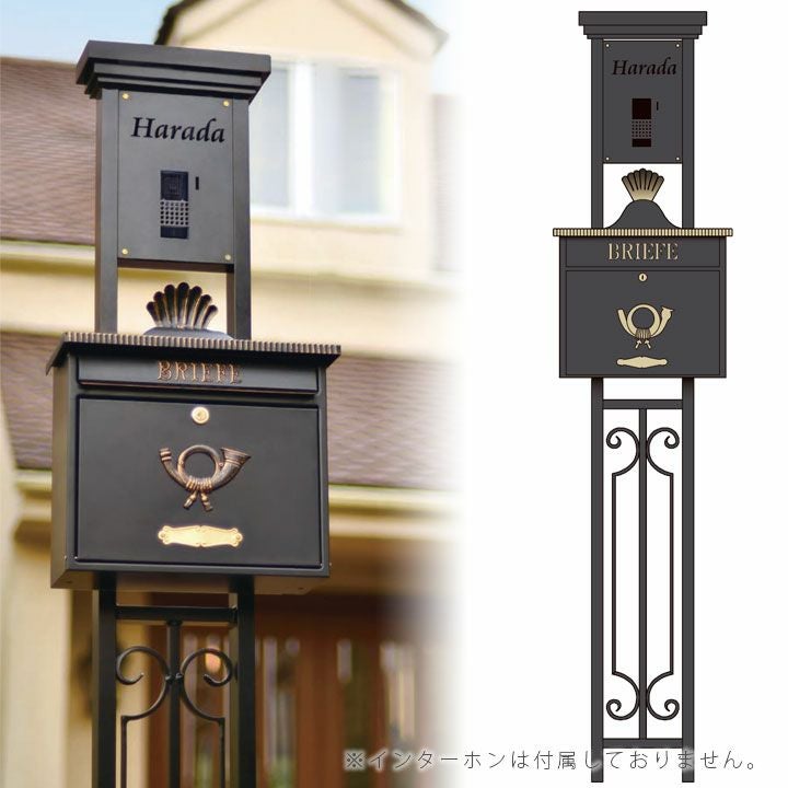 機能門柱 おしゃれ シンプル モダン かっこいい クール ブラック シルバー インターホン ポスト デリバリーボックス ファサード エクステリア 玄関 エントランス デザイナーズ 「 宅配ボックス付 機能門柱 ミース カラー:ブラック 埋込仕様 」