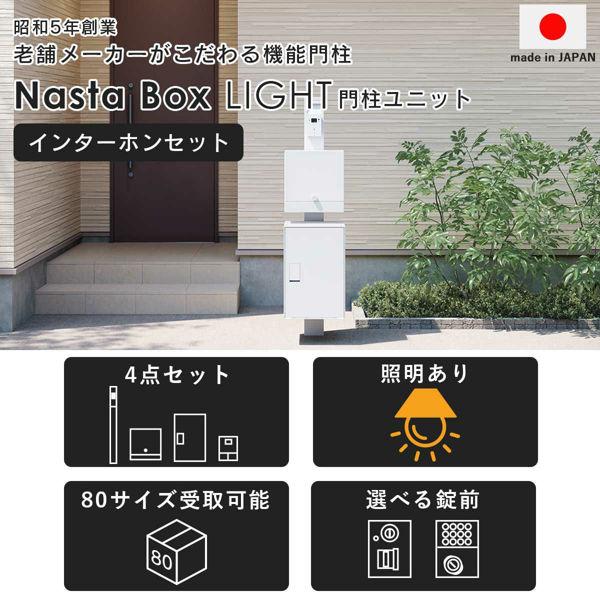 他の画像を見る 機能門柱 宅配ポスト インターフォン 防犯カメラ 監視カメラ 防犯 日本製 壁掛け 壁付け 置き配 再配達 戸建て 個人宅 一軒家 アプローチ エクステリア エントランス 玄関 不在 非接触 受取 荷物 ナスタ NASTA 「【照明なし】【インターホンセット】ナスタボックス ライト 門柱ユニット カラー:ホワイト(宅配ボックス + 郵便ポスト + 門柱 + インターホン) 」 販売価格 ¥ 115,500 税込 〜 販売価格 ¥ 税込 詳細を見る お気に入りに登録する (0)
