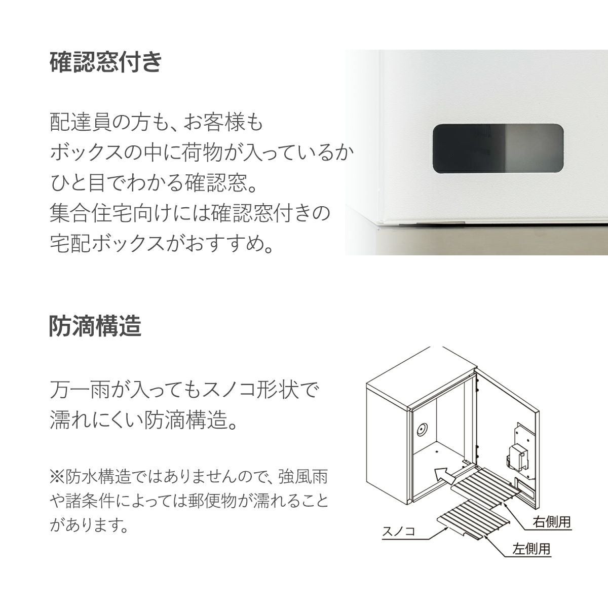 複数の荷物が受取できる宅配ボックスと郵便ポストがセットになった独立型の宅配ボックス。
