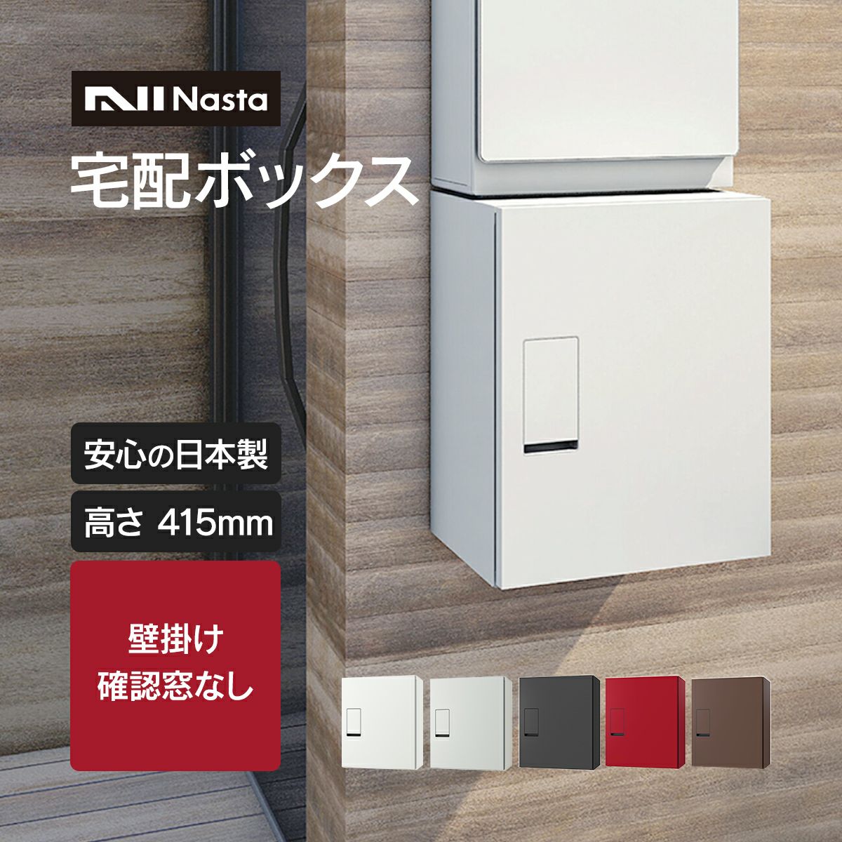 宅配box 宅配ポスト 置き配ボックス 戸建 一戸建て おしゃれ シンプル モダン 小型 コンパクト 置型 据置き メール便 アパート マンション 集合住宅 60サイズ 【受注生産】「 ナスタ 宅配ボックス + 幅木 セット ( 床 / 背面固定 ) 高さ415mm 確認窓無し 前入前出 プッシュボタン錠 KS-TLT340-FN415 + KSTLT340-4-SH100 」