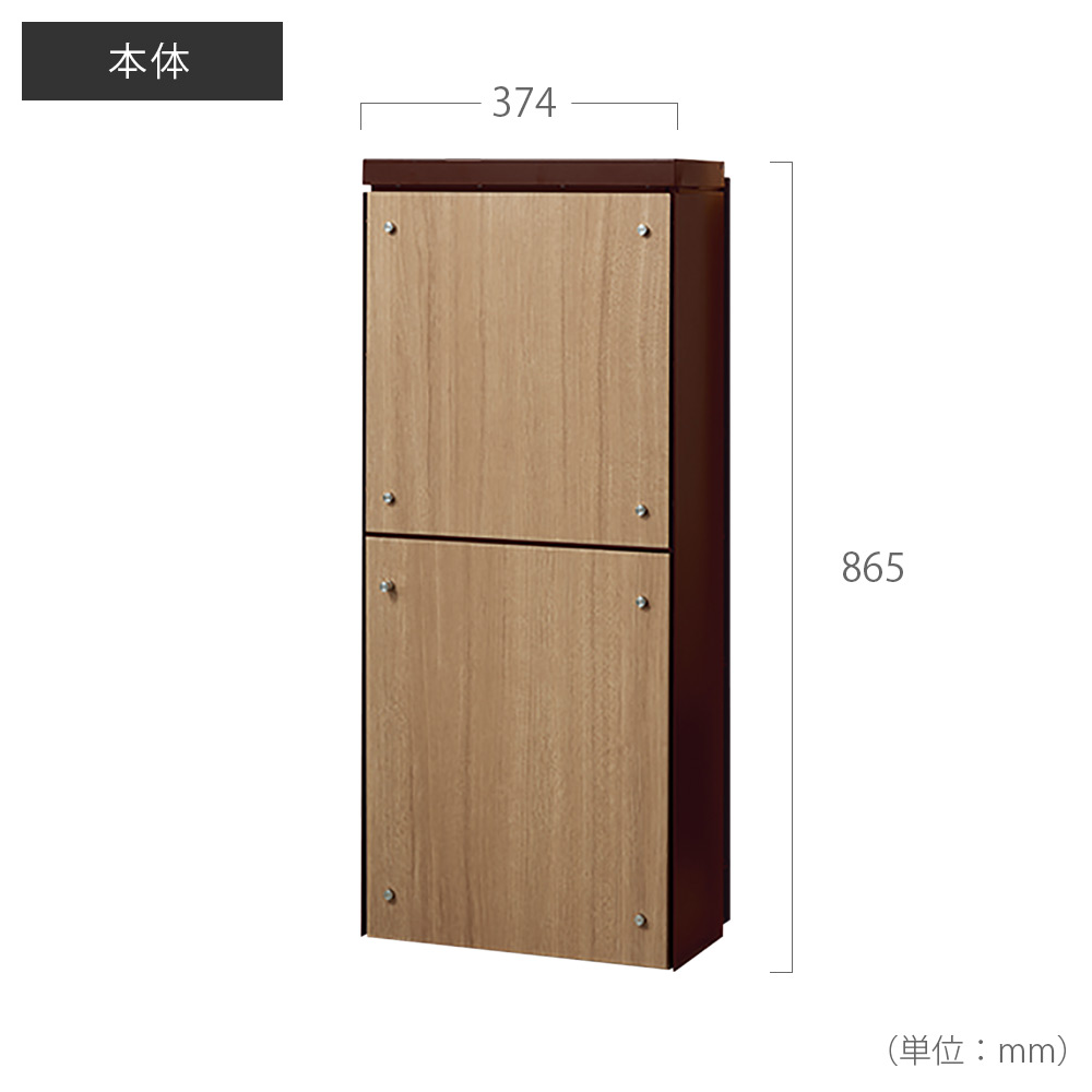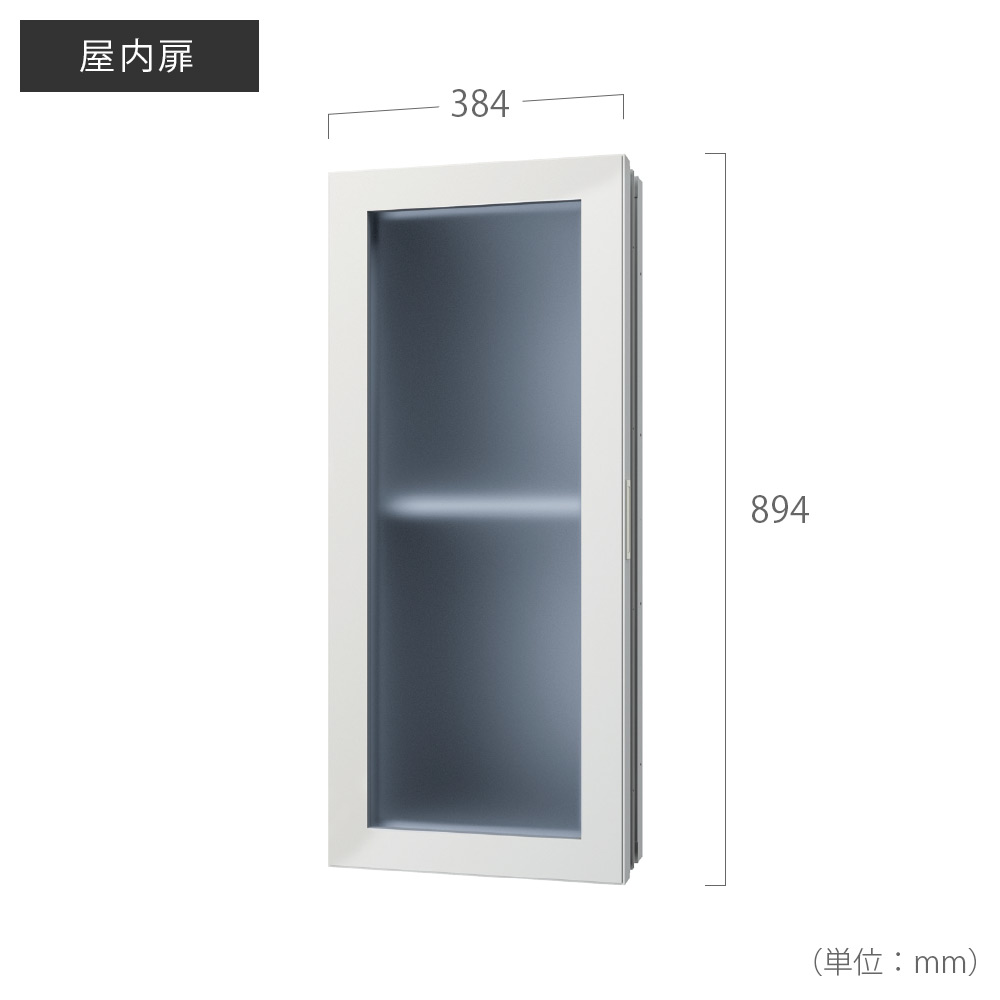 サイズ:本体/W374×H865×D158mm+α(壁面埋込部分)、ポスト投函口サイズ:270×60mm、屋内扉/W384×H894×D55mm