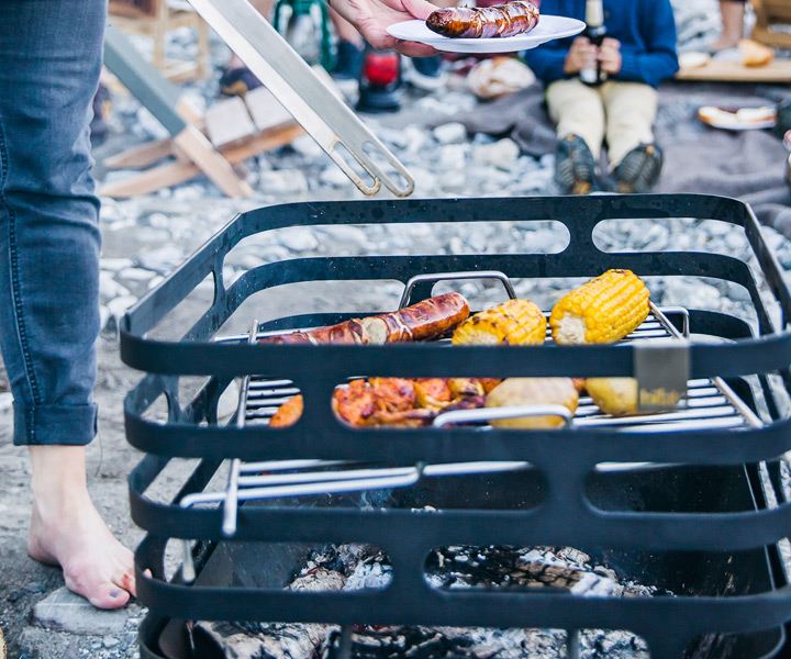 アウトドアストーブ「CUBE」の別売りオプションです。お肉やソーセージに付いたボーダーの焼き跡がなんだかおしゃれです。