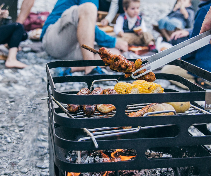 お肉や魚、野菜などの網焼きが楽しめる他、上に鍋やスキレットを乗せて調理することも可能です。