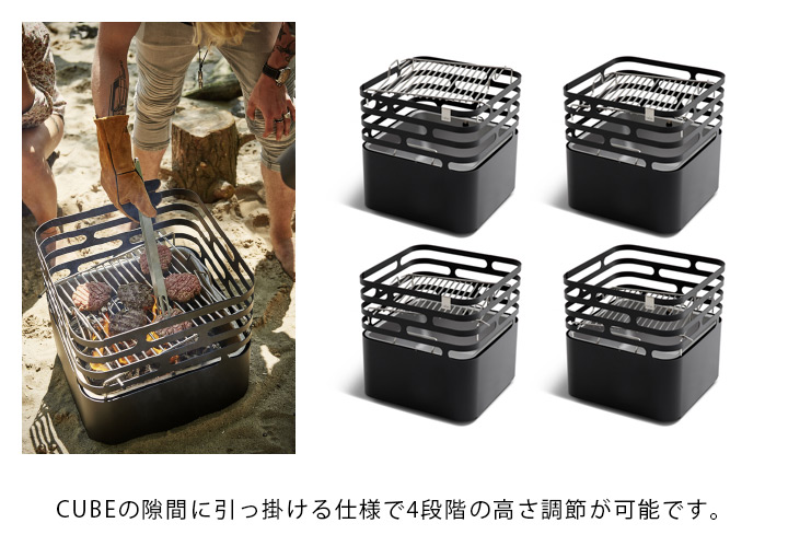 スタイリッシュなミニマルデザインのフォルムが特徴の焚火台「Hoefats CUBE ファイヤーバスケット」専用のグリル網です。