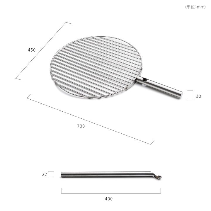 サイズ:グリッド・W450×D700×H30mm、ポール・φ22×L400mm