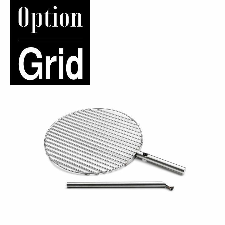 調理用グリッドは高さを調節でき、薪の火からの距離によって火加減を調整できます。