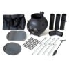 付属品:1.本体、2.煙突、3.ダンパー付き煙突、4.エルボー煙突、5.リフティングツール、6.延長レッグ、7.レッグ、8.ファイヤーグレート、9.ラウンドウォームプレート、10.ウォームプレート、11.キャリーバッグ