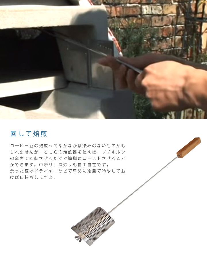 ドーム型の家庭用石窯「プチキルン」専用のコーヒー焙煎器です。