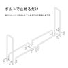 12箇所ボルト止めをして組み立てます。デッキ、ポーチ、ドア横、窓下など、薪運びの導線上に手軽にセットできます。