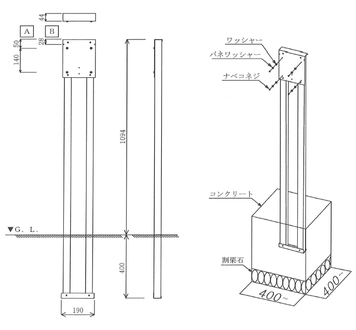 サイズ:W178×H1494(埋設部含む)×D44mm 素材:スチール(焼付塗装) 設置方法:モルタル(コンクリート)固定 付属品:取付金具 備考:カラーはシルバーのみ 発送までの目安:4営業日