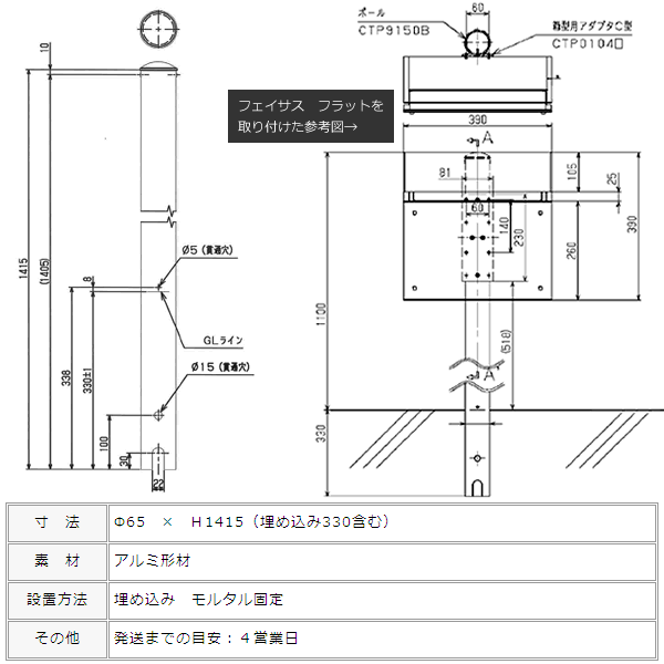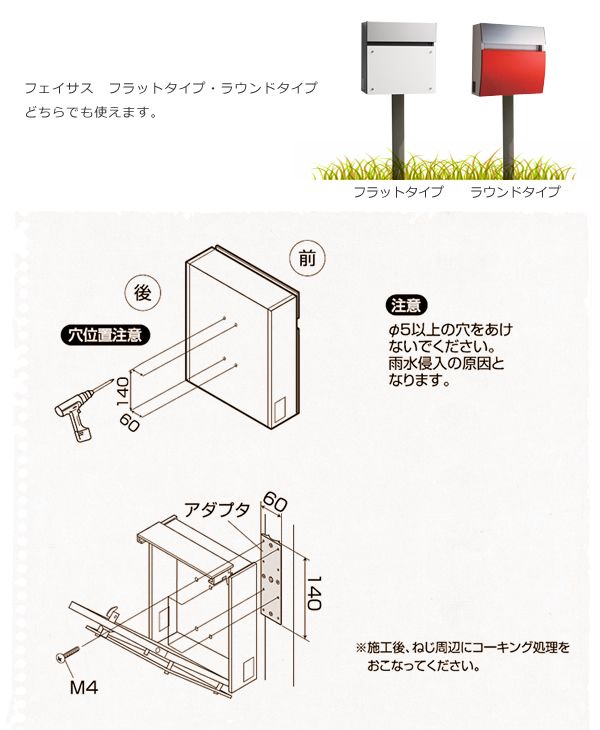 パナソニック電工製の郵便ポスト「フェイサス」専用のスタンドです。円柱型の1本足でとってもシンプル。ポスト「FASUS」のフラットタイプとラウンドタイプ両方でご利用いただけます。 壁面がない場合や、足元をすっきりしたい場合に便利です。 コンクリートなどで、埋め込んでご利用ください。 ポストは別売りです。