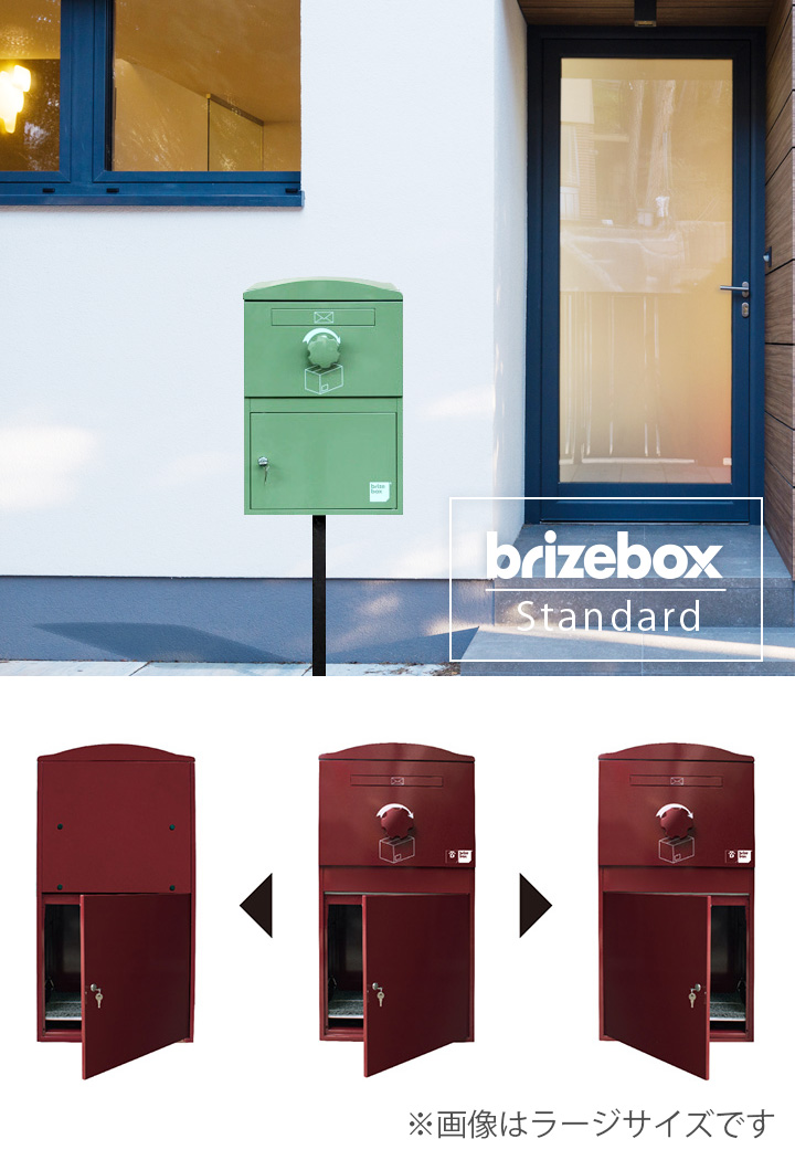 「Brizebox V2 ブライズボックス スタンダード」は、外構デザインやお客様の使い勝手に応じて 収納庫部分のドアの付け替えができる宅配ボックスです。