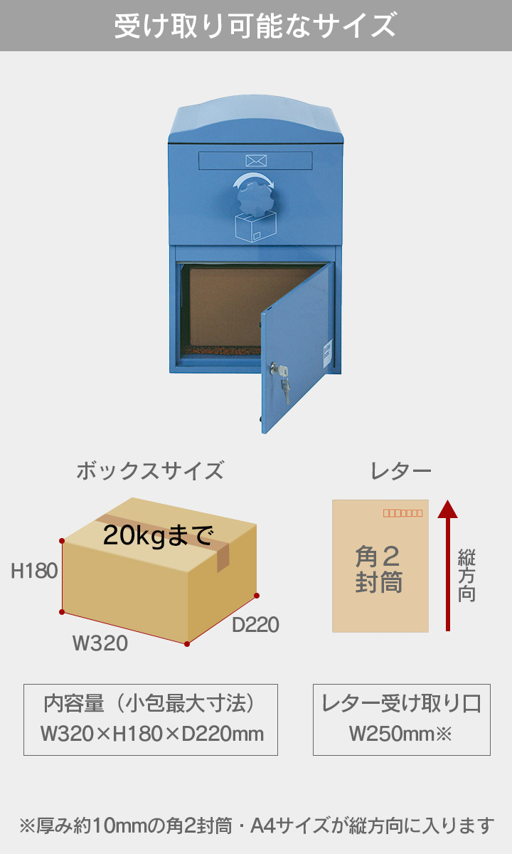 備 考:複数回受取り可能・ドアの取付可能