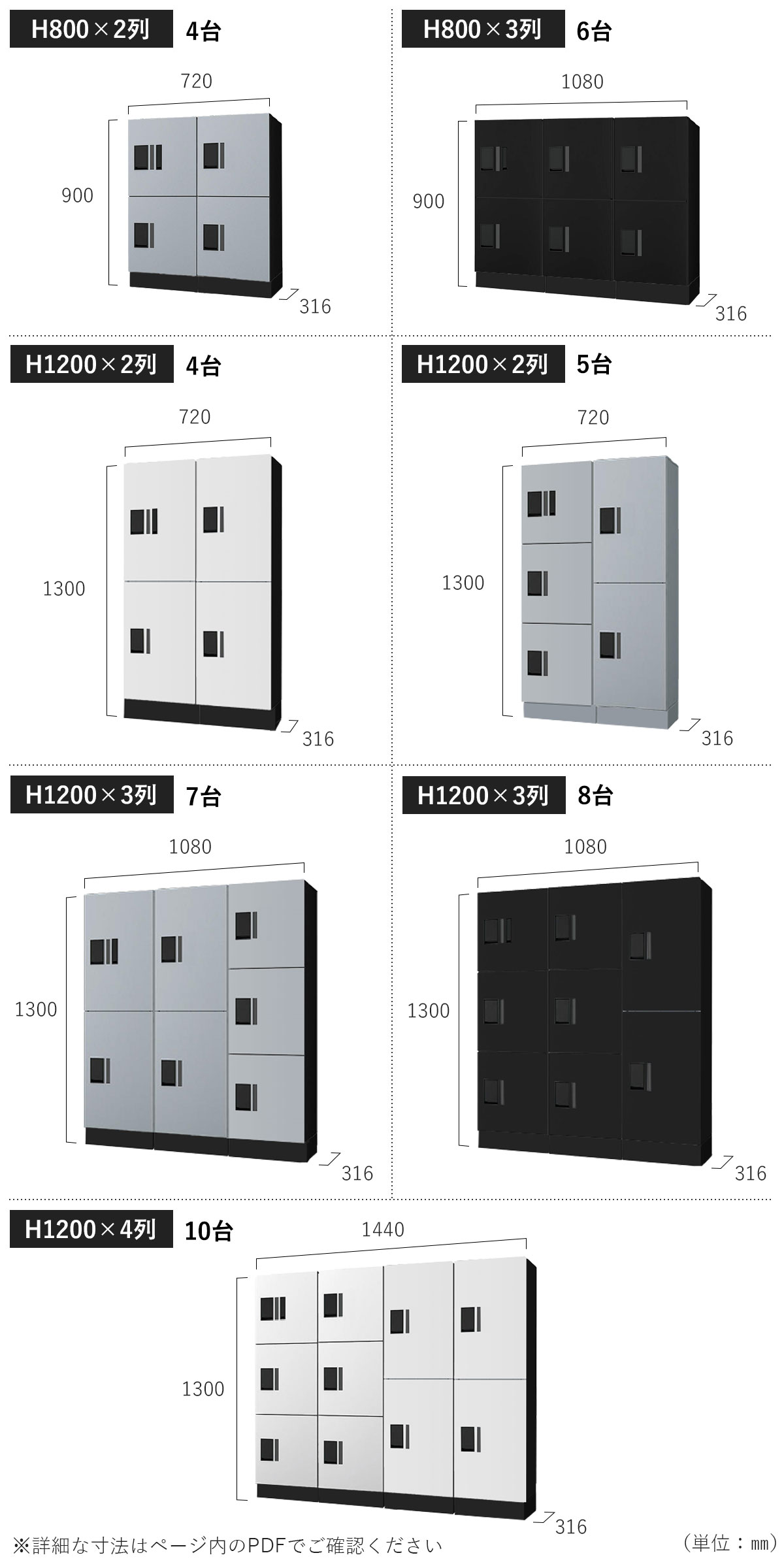 サイズ(H1200×4列 10台+幅木):W1440×H1300×D316mm